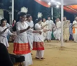 Lai Haraoba (Meitei: ꯂꯥꯏ ꯍꯔꯥꯎꯕ, Bengali: লাই হরাওবা) is a traditional cultural and religious festival celebrated by the Meitei people in Bangladesh. The festival honors the gods and spirits of Sanamahism, the traditional Meitei pantheon, through a series of rituals, music, and dance. It is characterized by classical Manipuri dance, devotional songs, and the use of traditional instruments, such as the pung (drum). Lai Haraoba, being a Meitei intangible cultural heritage, serves as an important cultural event for the Meitei diaspora in Bangladesh, playing a key role in the preservation and transmission of Meitei religious and cultural practices.[1][2][3]