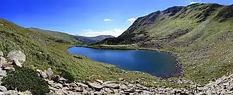 Lake Brebeneskul (Ukrainian: Озеро Бребенескул) is a mountain lake located in the Wooded Carpathians. It is the highest lake in Ukraine, at an altitude of 1,801 m (5,909 ft) above sea level. It has a glacial origin and is located in the Rakhiv Raion of Zakarpattia Oblast.