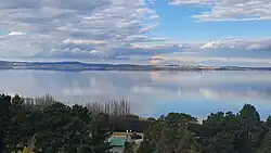 Lake George is a locality covering territory on the western and southern edges of the lake, stretching east to the Bombala railway line. The locality is largely within the area of the Queanbeyan–Palerang Regional Council, although some hillside areas are in the Yass Valley Council.[47] At the 2021 census, it had a population of 118.[46] The locality is generally rural-residential in character along the lake shore. A former grazier's homestead at Silver Wattle Point now operates as a religious retreat and Quaker meeting house. Located in the eastern section of the locality close to the town of Bungendore are some industrial facilities, including a sand quarry and an electrical substation serving the Capital Wind Farm.