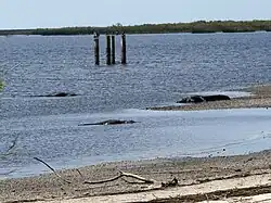 One area of the lake is called the "Monkey Box" area, after a strange now-eroded beacon located inside a wooden box on top of a marker pole, which resembled from a distance a monkey's head inside a box.[51]