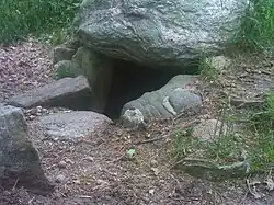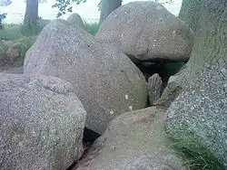 The dolmens are part of a series built between 3,500 and 3,200 BC, during the Neolithic.[3] As of 2001, about 400 of those are preserved in Mecklenburg-Vorpommern, 55 of which are located on the isle of Rügen.[4] Initially their number had been much larger, but many were destroyed when their boulders were used for church, housing and street construction since the Middle Ages.[4] In the 20th century, local teacher Friedrich-Wilhelm Furthmann and his wife preserved the dolmens in the Lancken-Granitz and Burtevitz area, before they were excavated by archaeologist Ewald Schuldt in 1969 and immediately thereafter restored for touristic use.[2] This was part of a series of 106 excavations conducted by Schuldt's team on megalith sites in present-day Mecklenburg-Vorpommern between 1964 and 1972.[5]