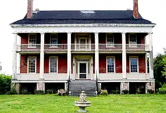 Land's End, also known as Leigh House, is a historic plantation house located near Hertford, Perquimans County, North Carolina. It was built about 1830, and is a two-story, five bay by four bay, Greek Revival-style brick dwelling. Its brickwork is laid in Flemish bond. It has a gable roof and features front and rear full-height porticoes supported by unfluted Doric order columns.[2]