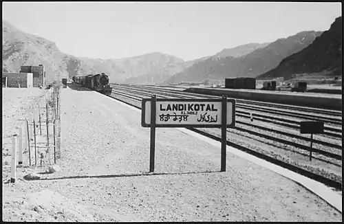 The Landi-Kotal railway station was opened in November 1925 alongside the Khyber Pass Railway's newly laid tracks between Jamrud and Landi Kotal.[1] In 1982, regular service to the Landi Kotal railway station was terminated. However, beginning in the 1990s, the station served as the terminus of the Khyber train safari, a tourist train running from Peshawar to Landi Kotal via the Khyber Pass. The route was closed in 2006 after damage to the track due to extensive flooding.[1][2]