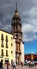 Independence forces under José Rafael de Iriarte arrived to the town on 4 October 1810. However, two months later royalist forces under Felix Calleja retook the locality, with insurrectionist sympathizers facing reprisals.[9] About 2,000 insurgents on horses attacked the town but were repulsed by Count Pérez Gálvez.[10] Royalist forces were attacked here in 1817 by Francisco Javier Mina without success. The town remained in royalist hands until the end of the Mexican War of Independence, when Agustín de Iturbide arrived.[9] The town did not celebrate its first Grito de Dolores to mark independence until 1825. In 1827 it became one of the four "departments" of the newly created state of Guanajuato, and in 1830, it gained city status.[10] In 1840, Father Ignacio Aguado founded the College of San Francisco de Sales and the College of La Madre Santísima was founded in 1844.[10]