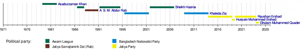 Hussain Muhammad Ershad | Jatiya Party | 3 January 2019 | 14 July 2019 | 11th |