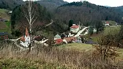 Lemberg was the site of a medieval castle. Very few ruins of the castle remain visible today. It was first mentioned in written documents dating to 1224. It was owned by the Lords of Sannegg and was abandoned in the 15th century.[4] What does remain is the castle chapel, now the church dedicated to Saint Pancras. It was extended and rebuilt in the 16th and 18th centuries.[5] A second church in the settlement is dedicated to Saint Nicholas. It was a 15th-century building restyled in the Baroque in the 18th century. Both churches belong to the Parish of Sladka Gora.[6]