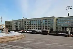 It stands behind a statue of Vladimir Lenin and is one of the few buildings that survived the Great Patriotic War.[11] It was built in 1934 and designed by Iosif Langbard.[11] It is one of the highest organs of state power in Belarus.[12] The Supreme Council is the continuation of the Supreme Soviet of the BSSR. It acts as the functioning parliament for Belarus.