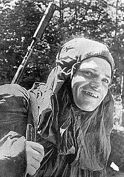 Leonid Vladimirovich Butkevich (Russian: Леонид Владимирович Буткевич; 25 March 1918 – 12 November 1985) was one of the top Soviet snipers of World War II. He was awarded the title Hero of the Soviet Union on 25 October 1943 for killing 315 enemy soldiers.