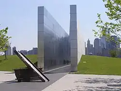 Empty Sky is the official state memorial to the September 11 attacks of the World Trade Center. Situated on a berm the parallel walls engraved with the names of victims are oriented to face the former World Trade Center site. Designed by Jessica Jamroz and Frederic Schwartz, it was dedicated on September 10, 2011, commemorating the tenth anniversary of the attacks.[32]