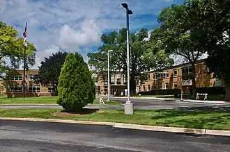 The school was founded as Libertyville Township High School in 1917. When it first opened there were 138 students from Libertyville and the surrounding towns, and seven teachers.[6] The original building (the Brainerd Building, pictured below) was located at the corner of Brainerd and West Park Avenues. In July 2008, the Brainerd Building was named to the National Register of Historic Places for its role as the first four-year high school building in Central Lake County, and its over 80 subsequent years of continued use. With the opening of the Butler Lake Campus in 1956, the Brainerd Building served as the school's Freshman campus, requiring students to commute about a quarter mile by foot between the two campuses. With the growth in the student body from communities surrounding Libertyville, the school became known formally as "Libertyville Community High School" until the opening of Vernon Hills High School in 1999. With the opening of Vernon Hills High School, the Brainerd Building was phased out as the Freshman campus, and the entire student body was eventually consolidated at Butler Lake. Plans to rehabilitate it for community use were unsuccessful and, to make way for athletic fields, demolition of the building began December 2014.[7] In 2003, Libertyville High School began a $9 million expansion project at the Butler Lake campus to add new offices, classrooms and an expansion of the school's music department.