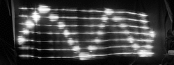 In the 1960s and 1970s a row of computer-controlled light sources attached to a stick was waved back-and-forth or spun (by hand or on a motor) to sequentially "imprint" upon the naked eye (or cameras) images, text, graphics, and graphs (plots of mathematical or recorded or live functions), originally using incandescent lamps at high voltage for quick response, and this system was called S.W.I.M. (Sequential Wave Imprinting Machine).[33][34][35] Originally a radar system was used to track the position of the S.W.I.M. to appropriately index into the content so that if it was waved backwards the content played backwards, and if it was waved faster the content played faster, etc., such as to create "virtual" content overlayed in near perfect alignment with physical reality.[36][37] More modern versions of S.W.I.M. use SDR (Software-Defined Radio) combined with inertial measurement units to track position.[38]