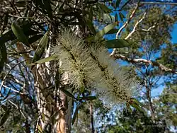 Eucalyptus species are the dominant vegetation type found along the western fringe of Limeburners Creek National Park, being well-suited to the drier soils in this area. Dissimilarly, environments in the park's centre and east are mostly swamps, dominated by sclerophyll woodlands, wet heath and swamp shrublands.[2] Another unique community within the park is that of the littoral rainforests which are found behind Queen's Head Beach as well as on the northern and southern slopes of Big Hill.[2] Littoral rainforests have recently been listed as an endangered ecological community under section 1 of the Threatened Species Conservation Act 1995, which has rendered the asset a priority for conservation programs conducted by NPWS NSW.[11]