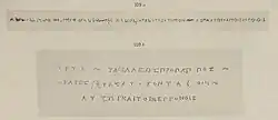 The Limyra bilingual inscription is a 4th-century BCE bilingual Greek-Aramaic funerary inscription discovered in 1840.[1] It remains in situ, in Tomb No. 46 in the Limyra Necropolis CH V, 3km outside Limyra, in southwest Turkey.[2] The double cut rock-cut tomb is Lycian in architectural style, and is the only tomb in the area with a bilingual inscription. The Aramaic inscription is on the lintel of the left opening, with the Greek inscription on the frieze above and across both doors.[2]