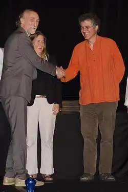 ![]() Lincoln Stein with (far right) Alfonso Valencia (far left) and Sarah Teichmann (center) at the Intelligent Systems for Molecular Biology (ISMB) conference in 2016 in Orlando, Florida. | |