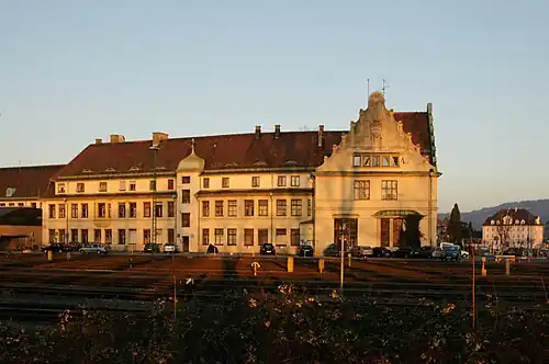 Lindau-Insel is a railway terminus and lies on the island of Lindau in the immediate vicinity of Lindau harbour. The current station building, which is protected as a monument, was built between 1913 and 1921 in the Art Nouveau style.[5]