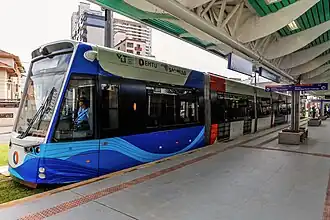 Line 1: Barreiros ↔ Porto is currently the only operational line of Baixada Santista Light Rail in São Paulo state, Brazil. It opened on 31 January 2016. It is 11.5 km (7.1 mi) long and has 15 stations in operation, all of them at-grade. The system is operated by Consórcio BR Mobilidade.[1]