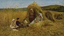 Smythe exhibited at the Royal Academy from 1863 (becoming a member in 1911) and the Royal Institute of Painters in Watercolours from 1881 (becoming a member in 1880) - he eventually transferred his allegiance to the Royal Watercolour Society in 1892, becoming a member in 1894. Smythe painted rural landscapes, genre and maritime scenes, people and animals in both oils and watercolours, and became associated with the Idyllists.[2]