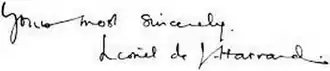 At the outbreak of the war, Lionel's younger brother Kenneth O'Gorman Harvard (born 4 June 1897)[2] gave up his intention to attend Harvard College.[14] He was commissioned August 1915[36] and, with Lionel, was promoted to lieutenant in the Grenadier Guards in January 1916.[14][29] He was killed at Pilckem Ridge, during the Battle of Passchendaele, on 1 August 1917;[1] Lionel, who had been fighting nearby, helped bury him.[5]