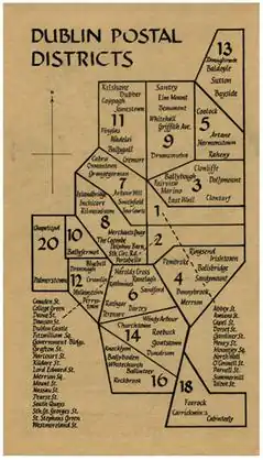- ^ Post-Líomatáiste Bhaile Átha Cliath: Dublin Postal Area, Department of Posts and Telegraphs, August 1927, pp. 1, 3, 8, 11