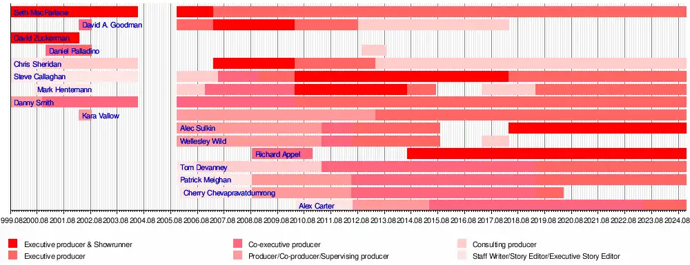 1999-2001, 2005-2007, 2010, 2012-2014 | 1-4, 6, 8-12 | One co-written with Gary Janetti and one with Danny Smith |