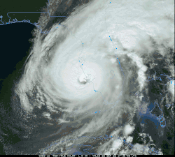 - September 16 – Hurricane Ivan struck Gulf Shores, Alabama as a major hurricane, with its large and powerful circulation producing peak wind gusts of 107 mph (172 km/h) in Pensacola. Ivan moved ashore with a significant storm surge, estimated at 10 to 15 ft (3.0 to 4.6 m); the surge, in addition to high waves, severely damaged the Escambia Bay Bridge carrying Interstate 10. Rainfall from the storm reached 15.75 in (400 mm) in Pensacola. The hurricane also produced an extensive tornado outbreak, including 18 that touched down in Florida. The strong winds knocked down many trees along the panhandle, causing prolonged power outages. The remnants of Ivan later crossed over the southern portion of the state after looping southward, eventually reforming in the Gulf of Mexico on September 23. Damage in the state totaled over $4 billion, and 29 people died from the hurricane.[42][21][43][44][45]
