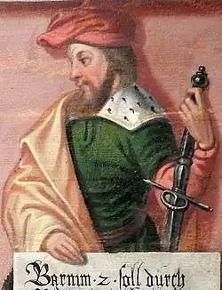 - ^ Numbered XIII, because of infants Boguslaus XI (son of George I, born and died in 1514) and Boguslaus XII (son of Barnim IX, born and died in 1542) who never ruled. This skipping also compromised the numbering of Boguslaus XIV. Boguslaus XIII was the eleventh ruler of this name.