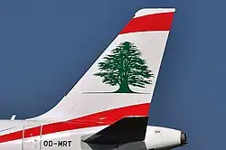 - Middle East Airlines: A cedar tree, which is the national emblem of Lebanon, in the tail. One of the current liveries, introduced in June of 2008, has the cedar placed on a white tail with two red bands rolling from the aircraft nose to tail.