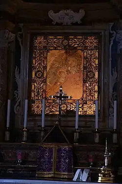 168. ^ Saint Joseph within the icon of the Holy Family. The image of Saint Joseph wears a golden ring donated by Pope John XXIII in 1963, accompanied with a personal letter of "consecration".