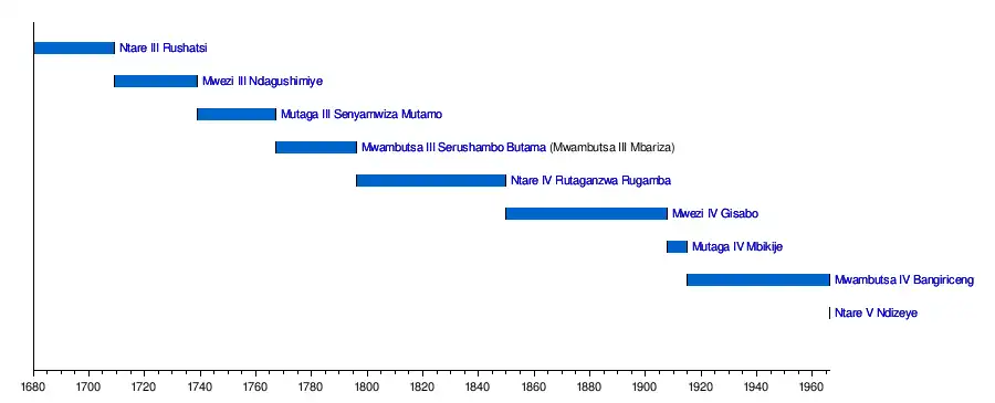 | Mwambutsa III Serushambo Butama | c. 1767–c. 1796 | Also known as Mwambutsa III Mbariza. | |