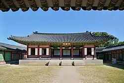 East annex of Gangnyeongjeon. It was completed in 1395.[102][21] It and Gyeongseongjeon were named by Chŏng Tojŏn; together their names are interpreted as the cycle of things beginning and bearing fruit.[102] It was destroyed in the 1553 fire and rebuilt.[3][29] It was destroyed in the 1876 fire.[101][8] After the 1917 Changdeokgung fire, it was disassembled and moved to Changdeokgung.[82][35] |