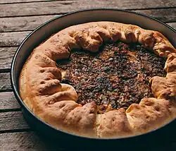 Tourtière Canada (Quebec) Savory A meat pie[20] originating from Quebec, usually made with finely diced pork, veal, beef, fish, or wild game.
