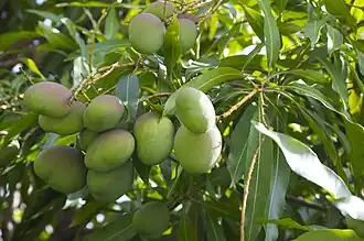 | Mangifera indica | mango | Anacardiaceae | Mango leaves, stems, peels, and sap contain urushiol, an allergen also present in poison ivy, poison oak, and poison sumac that can cause urushiol-induced contact dermatitis in susceptible people. Cross-reactions between mango contact allergens and urushiol have been observed. Those with a history of poison ivy or poison oak contact dermatitis may be most at risk for such an allergic reaction. During mango's primary ripening season, it is the most common source of plant dermatitis in Hawaii. |