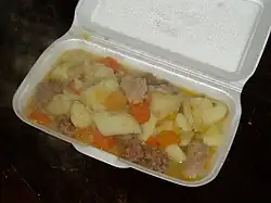 This dish consists of a bottom layer of minced beef, with a top layer of mashed potatoes. A variation using lamb mince is known as shepherd's pie. | |