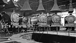 - East Altoona Roundhouse, Altoona, Pennsylvania largest locomotive servicing roundhouse in the world in 1904; demolished in two phases in the 1960s