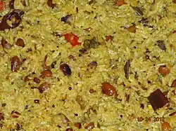 Rice bath India A seasoned rice with vegetables (Such as egg-plant, peas, tomato), a breakfast dish from Karnataka, India