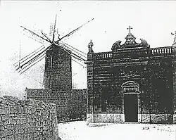 Possibly the last windmill to be built in the Maltese Islands. Built by Fortun Bonello. His son George Bonello dismantled it in c. 1940 and rebuilt it a few kilometres away. It was demolished in c. 1960.[91][92] | ||