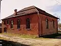 1936 | Traditional synagogue architecture with expressionist elements. The building is not oriented strictly from west to east, but from southwest to northeast. It is 11.85 m long and 7.88 m wide, the outer walls are 6.95 m high. In addition to the traditional synagogue architecture, expressionist elements such as an asymmetrically arranged tower on the southwest corner to highlight the main entrance, high, pointed windows and dormers on the hipped roof were used. There were two stars of David on the tower. The single-story main room was to the southeast; in the northwest there was a two-story construction with three rooms on the ground floor (anteroom to the men's bed room, the staircase to the women's bed room above and a heated room in between). There were separate entrances and smaller square windows. The building had eight large windows: three each on the long sides and two in the southeast, between which the Torah shrine stood. The bima was in the center of the room (slightly offset to the rear). Rows of seats were arranged next to the bima and between the bima and the Torah shrine. When it was converted into a warehouse, the windows were closed with boards, the interior was destroyed and a large gate was added in the southeast.[17] After the Second World War it was used as a warehouse for a long time (after renovations) and has been empty since the 1990s. The synagogue has been restored since 2019. | |
