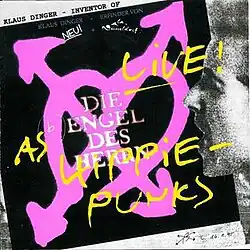 Live as Hippie-Punks (styled as LIVE! AS HIPPIE-PUNKS) is a 1995 live album by the band Die Engel des Herrn.[1] It was recorded at a 1993 concert in Düsseldorf which was the band's final performance, as they split up immediately following the concert. When Klaus Dinger signed to the Japanese record label Captain Trip Records in 1995, the recording was made into a live album and released (bearing the same "L.S.D." imprint as the band's debut album although being marketed only by Captain Trip).