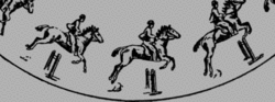 Animation showing an endless loop of horses clearing bounce type obstacles