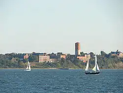 In 2007, Boston Mayor Thomas Menino helped found and get private funding for a teenagers' day camp on Long Island called Camp Harbor View. A partnership between Boston, Boys & Girls Clubs of Boston, and the camp's non-profit foundation, Camp Harbor View was dedicated in March 2007 and had baseball fields, swimming, classrooms, and many other activities.[28] The number of campers each summer was about 900.[28] It was located where the former marching grounds were, south of Fort Strong and the lighthouse.[29] Another summer camp, Harbor Discoveries, was operated by the city; the New England Aquarium formerly used facilities on Long Island for part of its programming.[14][30]