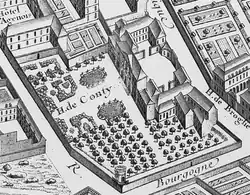 In 1733 Louise Élisabeth purchased a townhouse with an extensive garden on the rue Saint-Dominique in Paris from Françoise de Mailly (widow of Louis Phélypeaux, Marquis de La Vrillière), and hired the architect Nicolas Simonnet to redecorate the interiors. At that time it also became known as the Hôtel de Conti.[8] It is shown on the 1739 Turgot map of Paris as "H. de Conty".