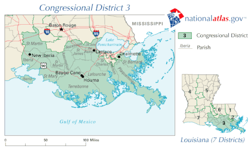 Louisiana's 3rd congressional district is a United States congressional district in the U.S. state of Louisiana. The district covers the southwestern and south central portion of the state, ranging from the Texas border to the Atchafalaya River.