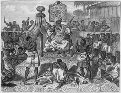While about two-thirds of enslaved Africans brought to Louisiana during French period were from the Senegambian region, the majority of enslaved Africans brought to Louisiana were from present-day Angola.[33] The term Congo became synonymous with "African" in Louisiana because many enslaved Africans came from the Congo Basin.[29][34] Renowned for their work as agriculturalists, the Bakongo and Mbundu peoples of the Kingdom of Kongo, Kingdom of Ndongo, and the Kingdom of Loango were preferred by slave traders for their slash-and-burn technique, mining and ironwork expertise, mastery of fishing, and their bushcraft skills.[30]