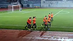 After securing first place in the first round, the club was invited to play in the 2012 Singapore Cup.[14] In the preliminary round on 18 May 2012, they played Geylang United, where they won 2–1 in added extra time, advancing them to the two-legged quarter-finals.[15] They faced Burmese club Kanbawza in early July wherein they defeated them 5–3 on aggregate after a 3–1 win and a 2–2 draw in both legs.[16] They faced Tampines Rovers in a two-legged semi-finals and lost 5–0 on aggregate. They lost the third-place match 4–0 to Gombak United.