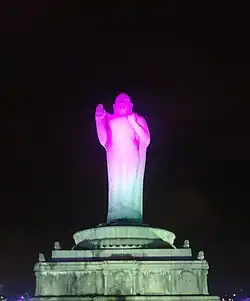 Lumbini Park, officially T. Anjaiah Lumbini Park,[1] is a small public, urban park of 3 hectares (7.5 acres) adjacent to Hussain Sagar in Hyderabad, India. Since it is located in the centre of the city and is in close proximity to other tourist attractions, such as Birla Mandir and Necklace Road, it attracts many visitors throughout the year. Boating is one of the best attractions and people go to the Buddha idol placed in the middle of the Tank Band in the boats. Constructed in 1994, the park is named after the former Chief Minister of Andhra Pradesh T. Anjaiah. The park is maintained by the Buddha Purnima Project Authority of the Government of Telangana. In 2007, it was one of the targets of the 25 August 2007 Hyderabad bombings that killed 44 people.[2]