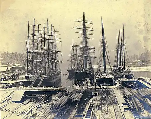 - ^ "Three sailing vessels in dock at Port Blakely lumber mill, Washington, ca. 1900". digitalcollections.lib.washington.edu. Retrieved 2020-01-26.