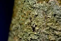 Hudson regarded the adult moth's protective resemblance to a moss or lichen covered twig as highly efficient in protecting the insect from predation.[7]