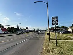 M-66 is a four-lane highway that connects with State Road 9 (SR 9) at the Indiana state line in southern St. Joseph County. The highway runs north to Sturgis through farm land where it turns east through town running concurrently with US 12 on Chicago Road.[6] As it leaves Sturgis to the north it crosses a branch of the Michigan Southern Railroad,[7] and it becomes a two-lane surface highway along Nottawa Street. The highway runs near several small lakes and crosses the Prairie River before meeting M-86. The two highways run north–south concurrently for about 1.9 miles (3.1 km) along the Nottawa–Colon township line. Farther north, M-66 crosses the St. Joseph River and meets M-60. M-60/M-66 run together to the east, crossing Nottawa Creek, then turning northeasterly in Leonidas and crossing into the northwest corner of Branch County. M-60 and M-66 separate west of Union City, and M-66 turns north into Calhoun County.[6][8]