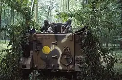 ![]() A U.S. Army M113-OSV of 1st Battalion, 4th Infantry Regiment, provides overwatch while conducting recon operations during exercise Allied Spirit at the Joint Multinational Readiness Center in Hohenfels, Bavaria, in 2015. | |