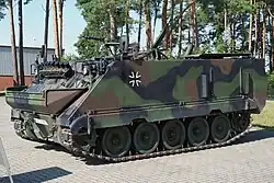 The Australian Army refers to its M113A1s as "buckets", "bush taxis"[21] and modified M113A1s fitted with 76 mm turrets as "beasts". The German Army has various nicknames, depending on location and branch of service, including "elephant shoe",[22] "Tank Wedge"[23] and "bathtub". In Spain's Army it is known as "TOA", the acronym of Transporte Oruga Acorazado, which is Spanish for Armored Tracked Carrier. In the Ukrainian Army it is called "Emka" (M).